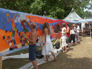 Dur dur de se réveiller ce matin… Nous ouvrons la fresque juste avant midi et les premiers “apprentis” peintres nous rejoignent tranquillement. Un peu plus de 15 peintres aujourd’hui avec une mention spéciale pour une demoiselle allemande qui a peint durant plus de 5 heures.